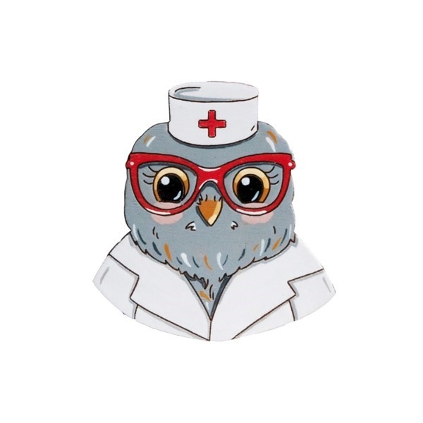 Порадовать любимого врача можно с помощью деревянной брошки совушки-врача. Значок раскрашен вручную, покрыта защитным слоем лака. Крепление сзади — металлическая булавка.