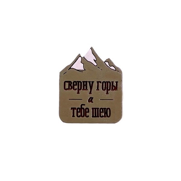 Значок "Сверну горы и тебе шею" послужит или оригинальным дополнением к вашему образу, или станет добрым подарком вашим друзьям или коллегам. Значок сделан из дерева, раскрашен акриловыми красками вручную, а сверху покрыт лаком. Благодаря ему значок сохранит свои яркие цвета дольше. Крепится на булавку, которая расположена сзади.