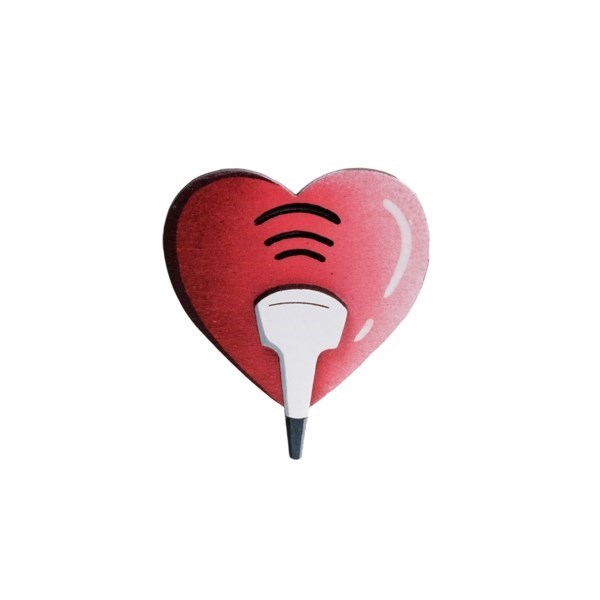 Двухуровневая деревянная брошь ручной работы для врача-узиста. Значок раскрашен вручную акриловыми красками и покрыт защитным слоем лака. Имеет надежное крепление — металлическую булавку.