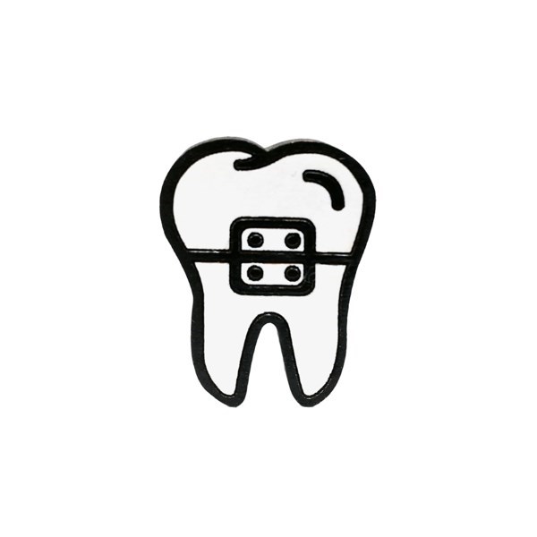 Деревянная брошь "Зубик с брекетом" для стоматологов. Расписана вручную качественными акриловыми красками, для надежности покрыта лаком.