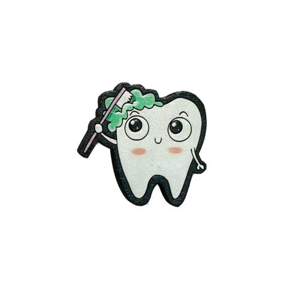 Деревянный значок для врача-стоматолога в форме зубика, который чистит сам себя.