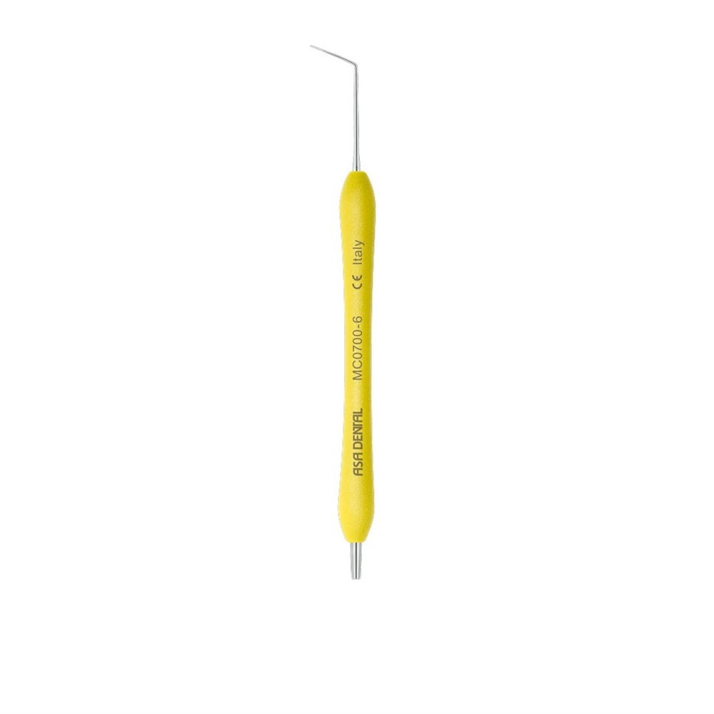 Зонд MC0700-6 односторонний Magic Color с пластиковой ручкой. Рабочая часть из нержавеющей стали, устойчивой к коррозии. Мягкая удобная ручка, инструмент не скользит. Желтая. Автоклавируется при 135*.