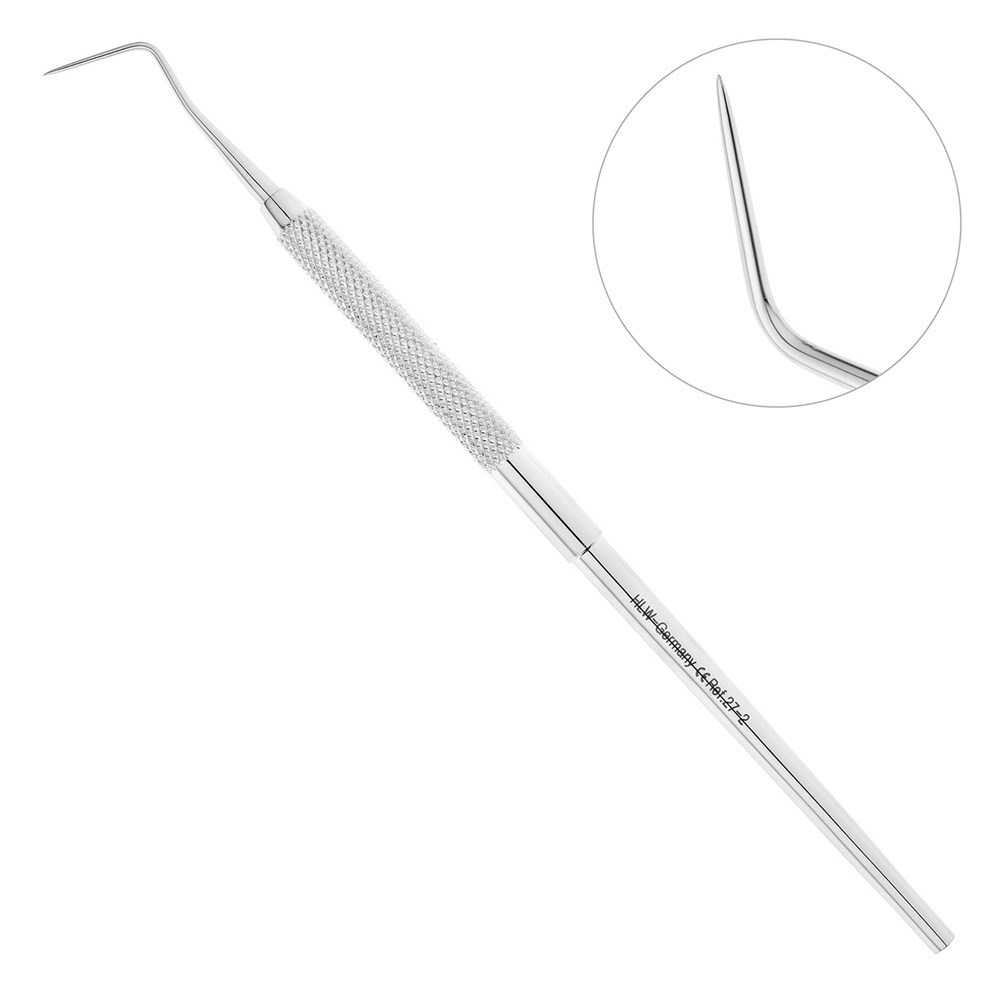 Для диагностических исследований применяется стоматологический зонд формы №8. Производителем инструмента является немецкая компания HLW Dental Instruments.