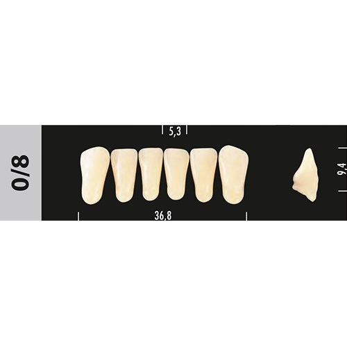 Зубы Major C4 0/8 фронтальный низ, 6 шт (Super Lux)
