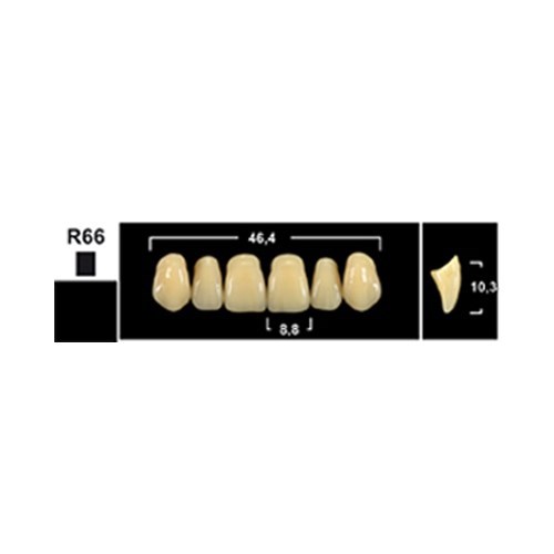 Зубы Yeti A2 R66 фронтальная группа, верхние (Tribos) 6 шт. Германия. Tribos - акриловые зубы нового поколения. Главное достоинство этих зубов - ярко выраженная окклюзионная поверхность моляров, превосходные эстетические качества.
