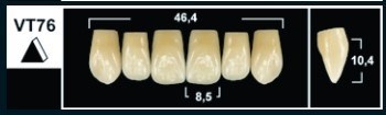 Зубы Yeti A2 VT76 фронтальная группа, верхние (Tribos) 6 шт. По Дитеру Шульцу, Германия. Tribos - акриловые зубы нового поколения. Главное достоинство этих зубов - ярко выраженная окклюзионная поверхность моляров, превосходные эстетические качества.
