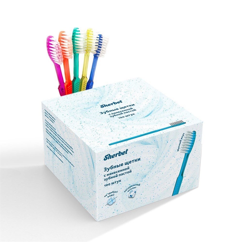 Зубная щетка с нанесенной зубной пастой Sherbet", упаковка 100 штук, 01-000001